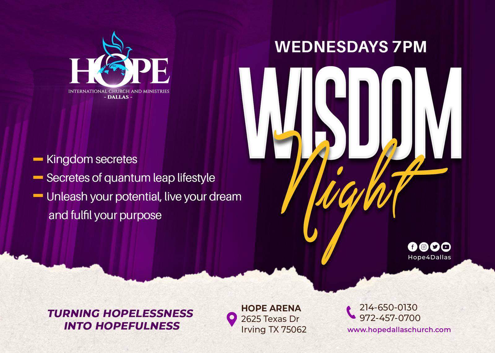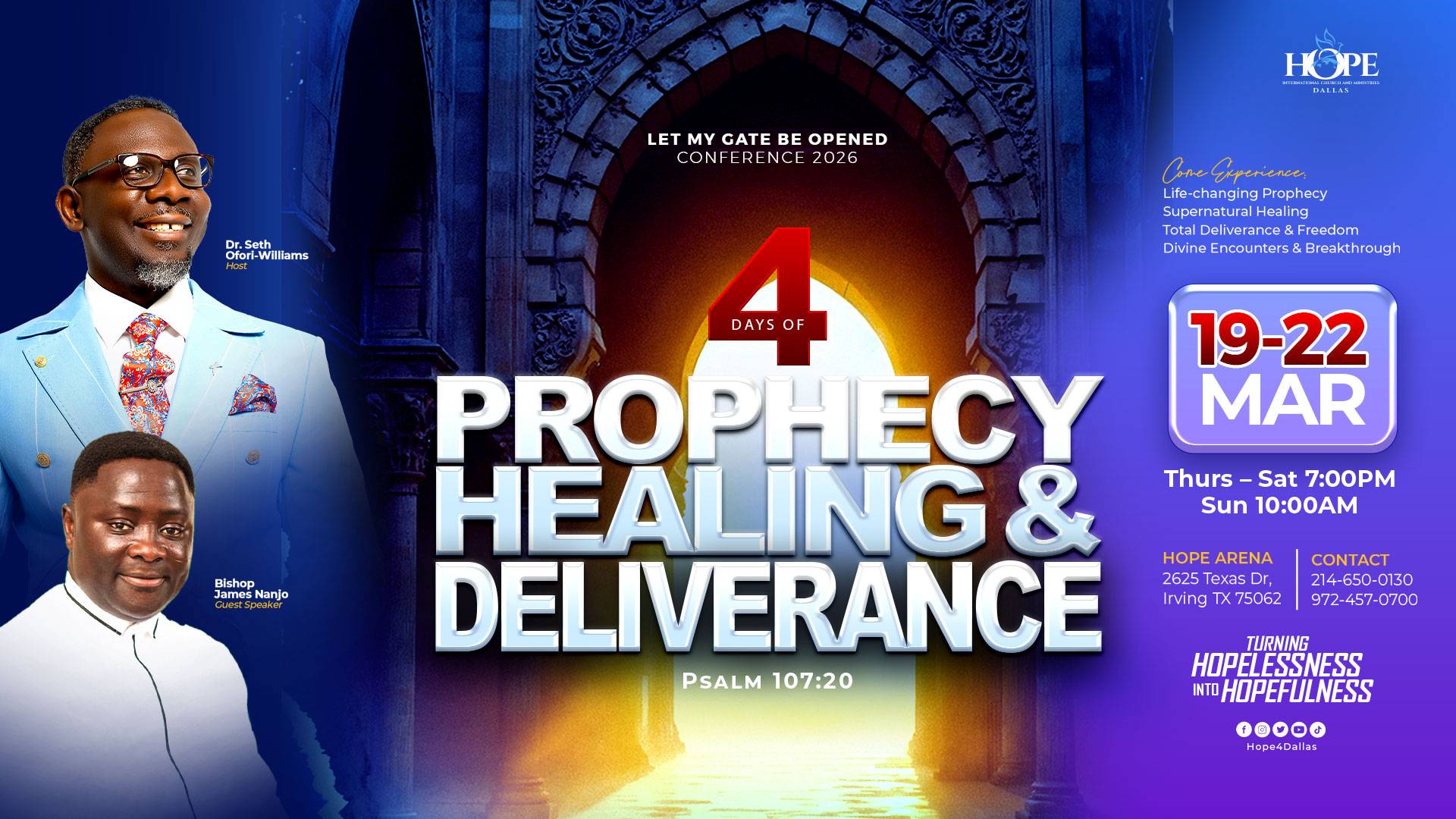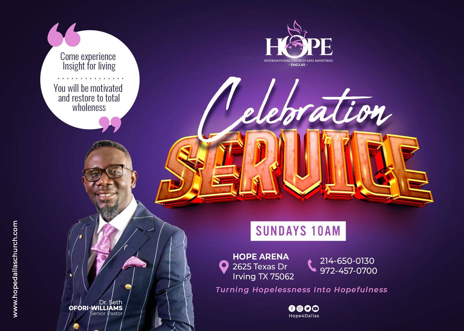 The city of Hope Arena where believers are empowered to live a life of fulfilment. At hope Dallas you will be inspired and equipped with the anointed sermons of Dr. Pastor Seth Ofori-Williams, the senior pastor to experience the favour of the Lord.